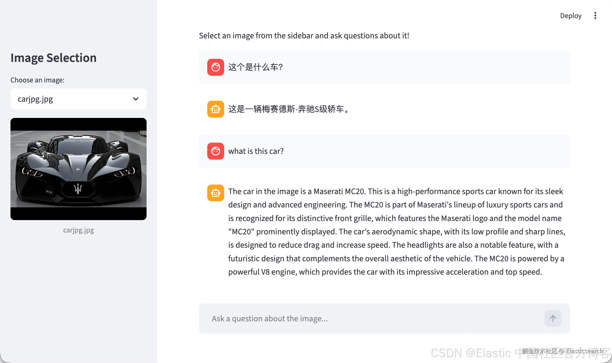 在左边,我们选中所需要的图片。在右边,我们可以看到聊天的记录。我们可以针对图片来进行提问: