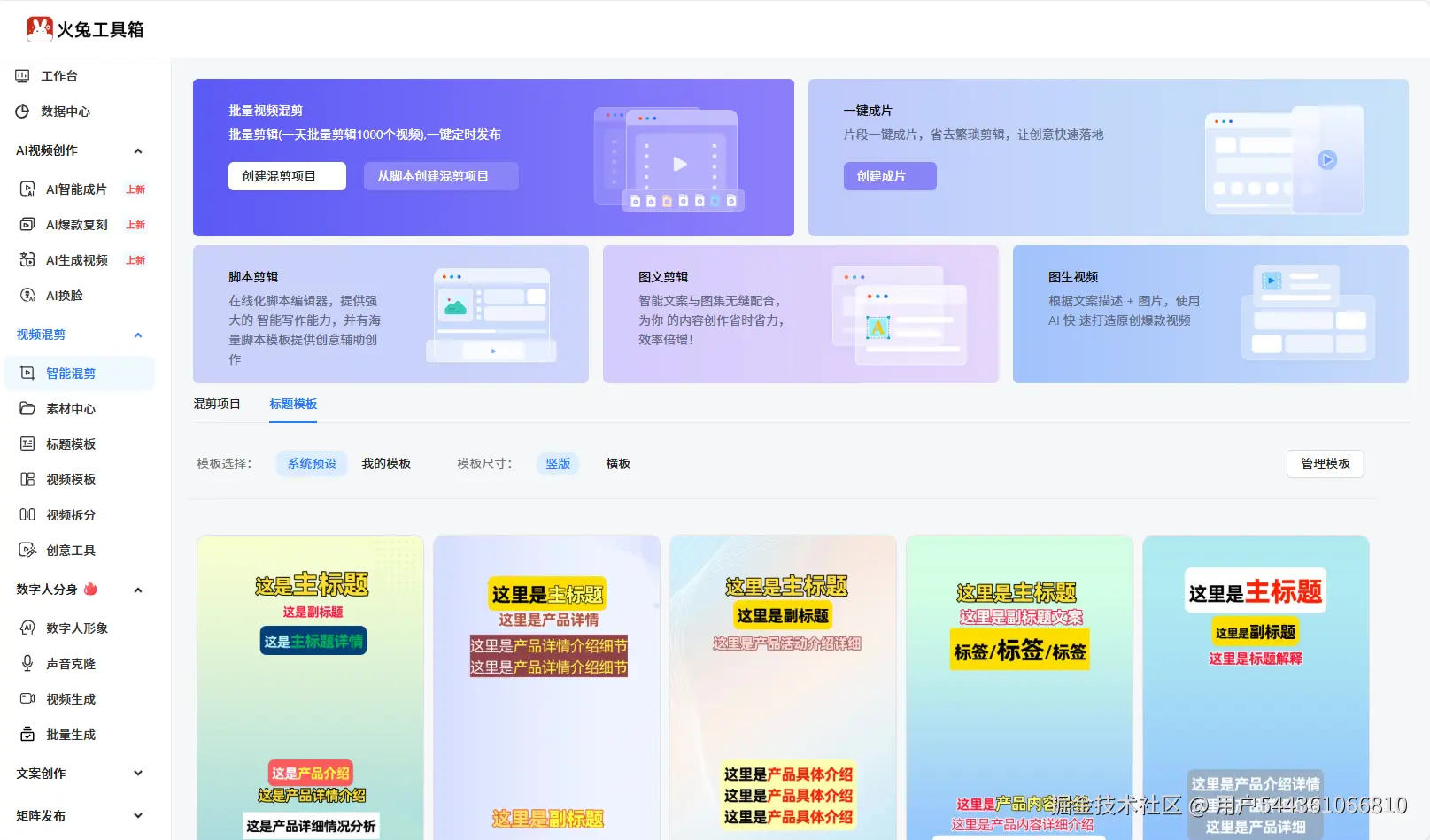 而且火兔工具箱不只是单纯的拼接工具,它覆盖了从创意到获客的完整内容闭环,除了批量拼接、批量混剪,还集成了数字人克隆、声音克隆、AI一键成片等核心能力,适配餐饮、美业、电商、教育等全行业,不管你是自媒体创作者、企业运营团队,还是实体商家,都能用到。