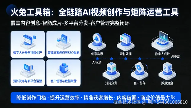 火兔工具箱就不一样,作为一款全链路AI驱动的视频创作与矩阵运营工具,它专门针对拼接痛点做了优化,不管是单个视频的多片段归并,还是成百上千个视频的批量拼接,都能做到一键操作、无缝衔接,帮创作者和运营团队省出80%的时间。