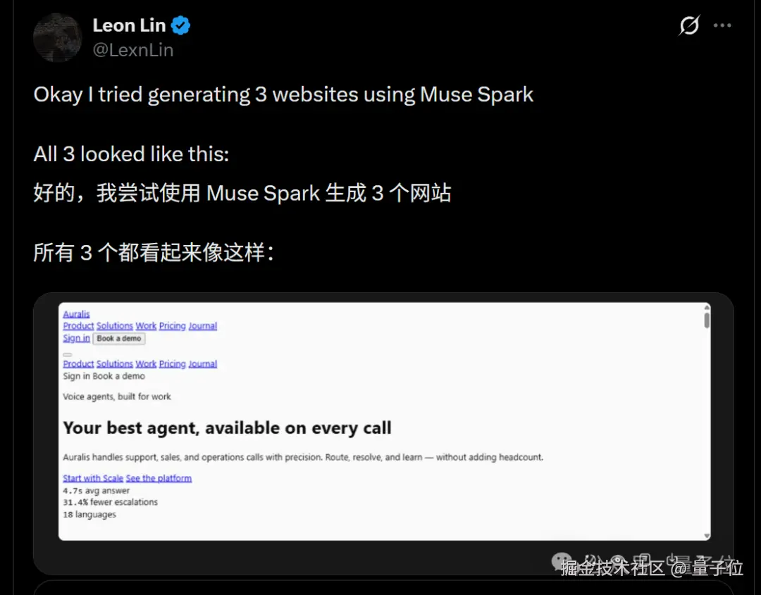 他们拿到 Muse Spark 的早期访问权测了一波,然后给出了一个结论:Meta 回来了!