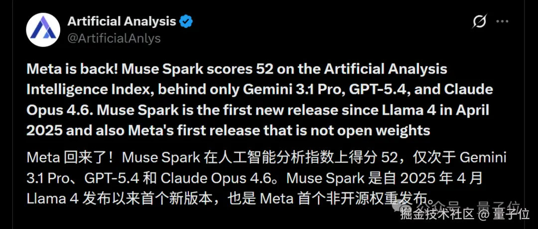 目前,随着 Muse Spark 测评一同出炉的,还有第三方机构的测评。