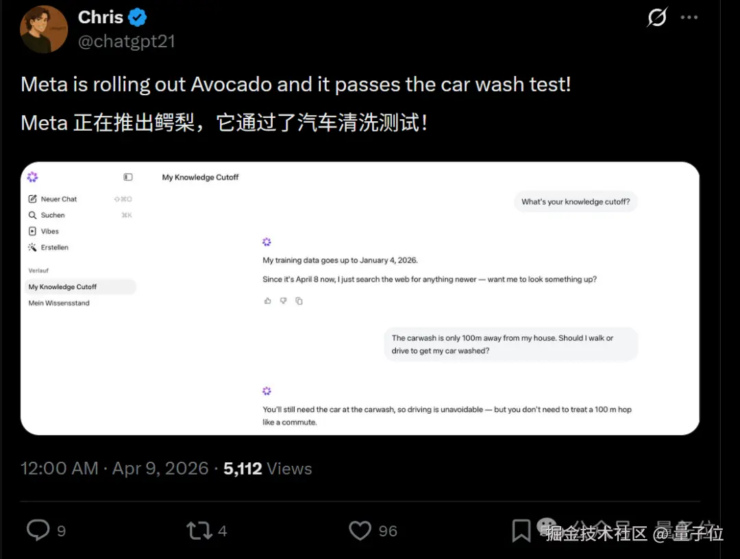 Muse Spark:洗车当然要把车开过去,但没必要搞得跟上下班通勤似的。