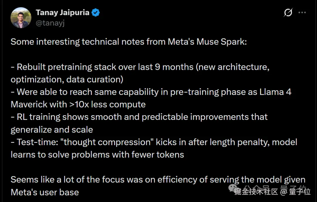 至于 Muse Spark 是如何做到这一点的,Meta 也公布了背后的训练细节。