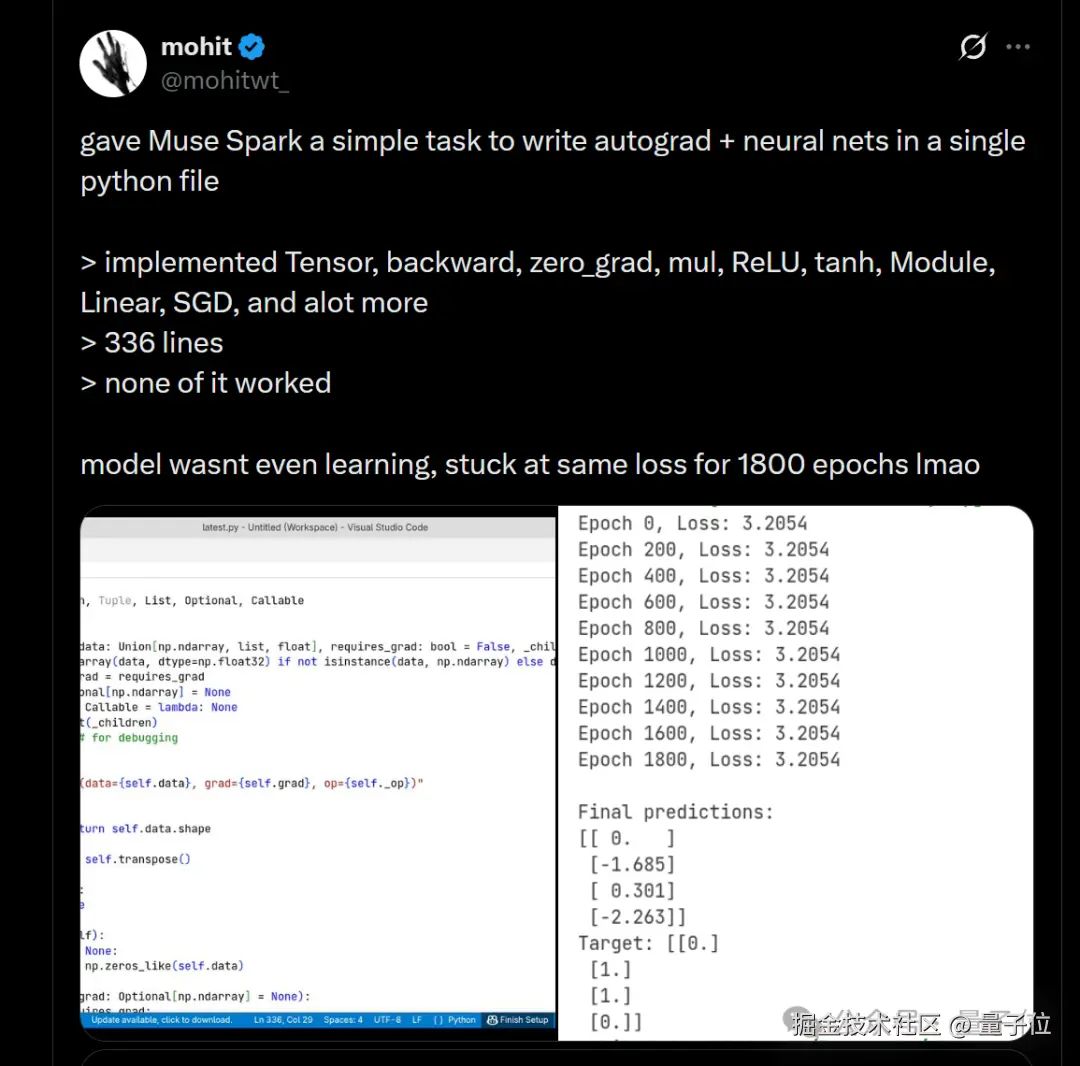 一个简单的编程任务,Muse Spark 虽生成了一大堆东西,但根本跑不通。