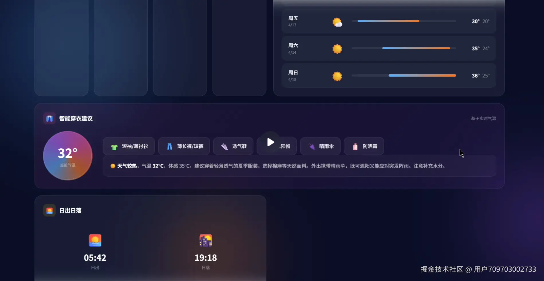 - 逻辑处理闭环:穿衣建议系统能够根据模拟的温度数值进行逻辑判定,而非简单的静态文本填充。