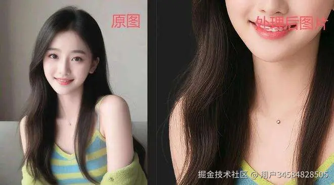 等待片刻后生成了处理后的图片,放大看看,这个发丝细节不亚于专业人员处理的效果。