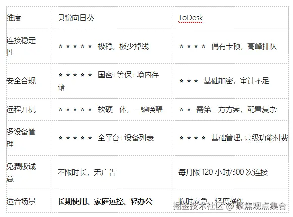 为了帮助个人用户做出决策,我们选取了目前个人市场占有率最高的两款国产软件——贝锐向日葵与ToDesk,从四个核心维度进行深度对比。