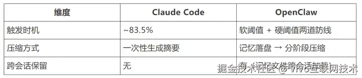 追加式模式终究会撞上上下文窗口的天花板。Claude Code 和 OpenClaw 各自设计了压缩机制。