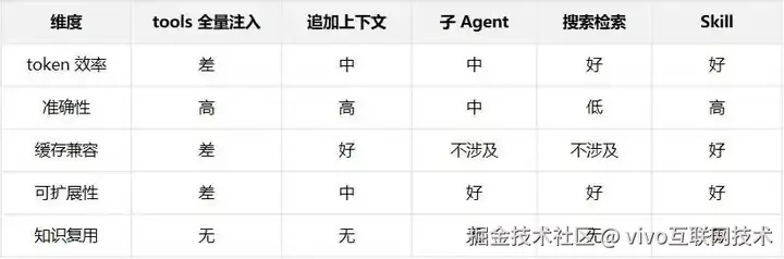 Skill 不是替代其他方式,而是在它们之上提供了一个缓存层。 底层仍然可以用搜索检索来匹配 Skill,用追加上下文来加载 Skill 内容,但搜索空间和加载量都被功能聚合大幅压缩了。