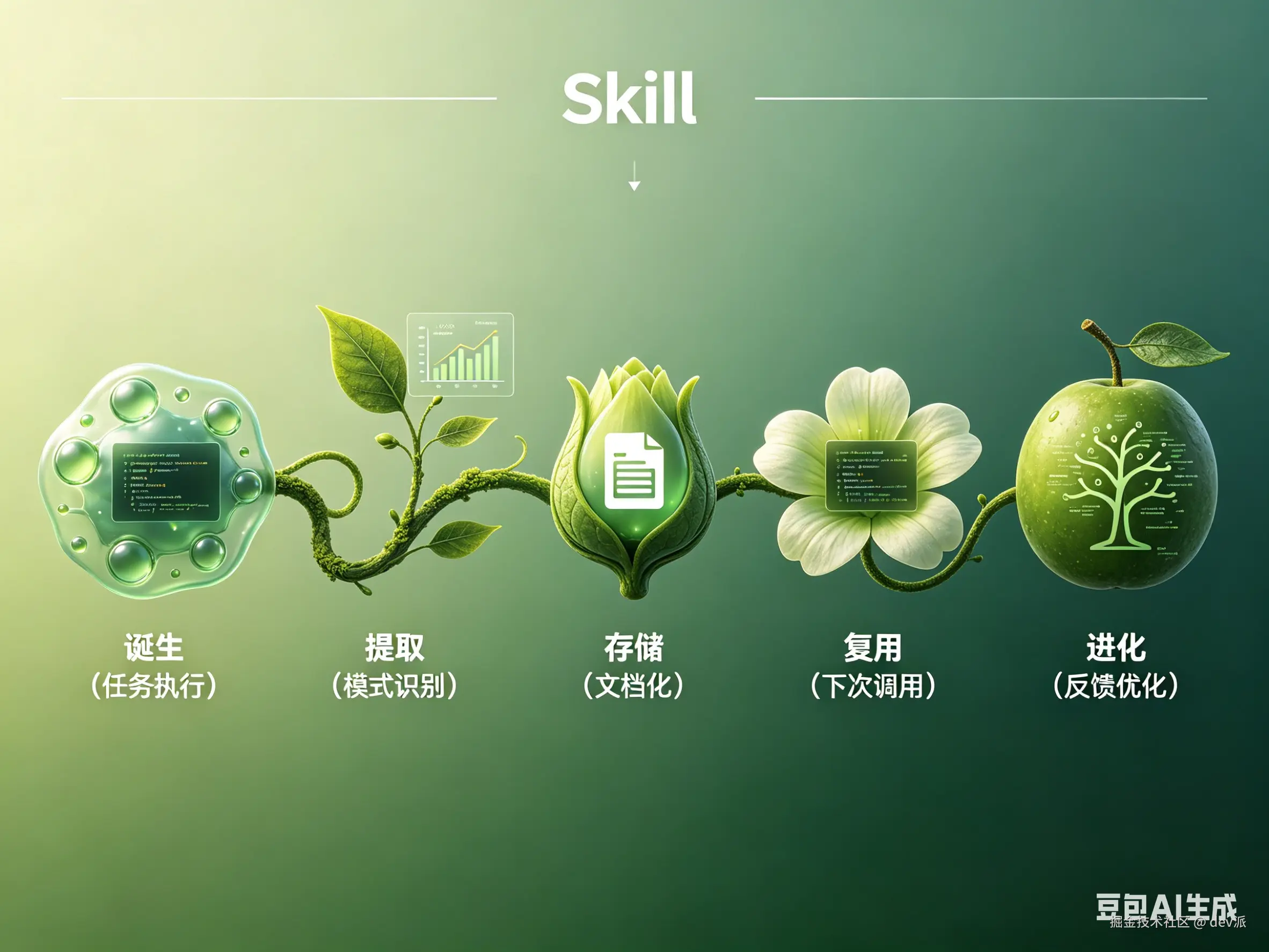 - 每周,Agent 可能会回顾本周的 Skills,考虑是否需要合并或优化