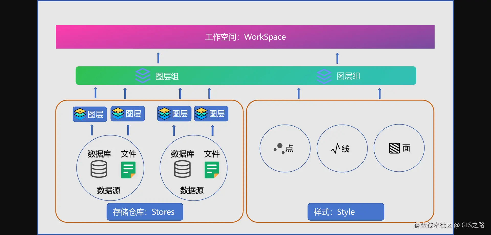 在浏览器输入以下地址访问。http://host:8080/geoserver/www/GeoServer 数据组织结构.png