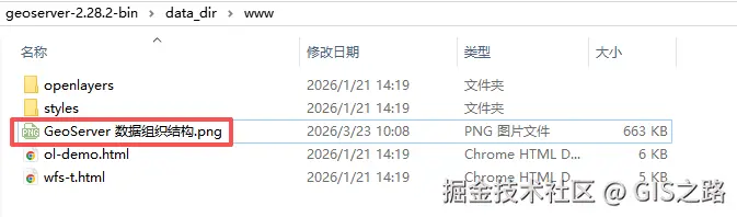 现在我们向www文件夹拷入一个图片文件GeoServer 数据组织结构.png