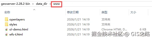 首先打开GeoServer数据目录geoserver-2.28.2-bindata_dirwww。