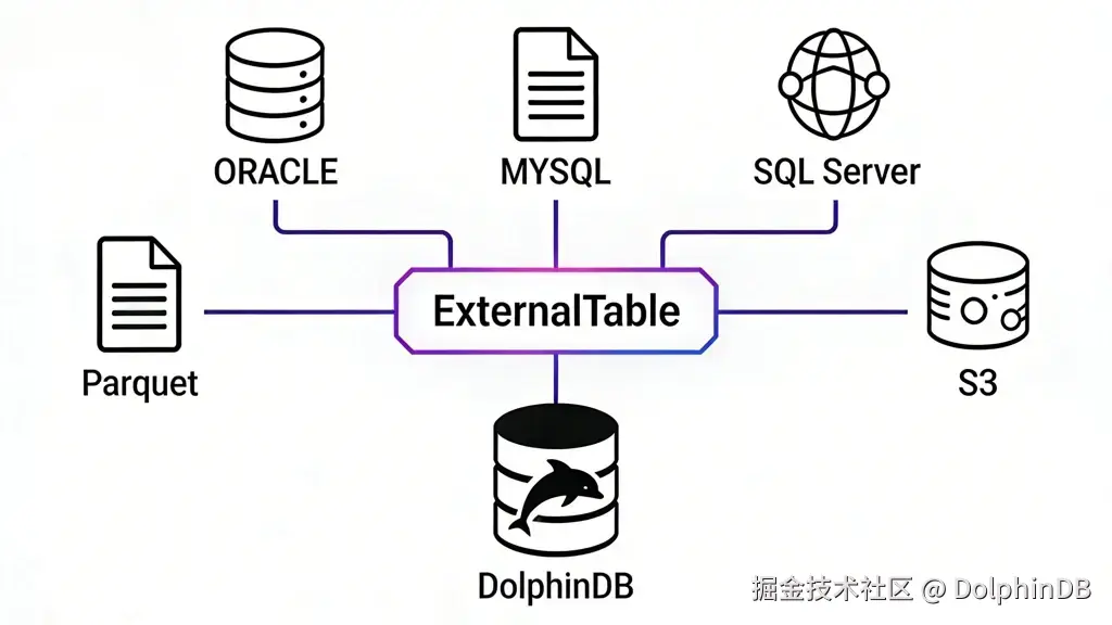 随着企业信息化建设的持续深化及数据聚合应用的扩展,多源数据的融合与实时分析已成为核心业务需求,传统的数据迁移、导入导出或第三方工具同步方式,流程繁琐、效率低下,难以满足快速、简洁、高效的融合诉求,而 DolphinDB 的外部表跨数据库联邦查询功能,凭借零迁移、免预处理、实时联邦的核心特点,为解决这一痛点提供了高效路径。