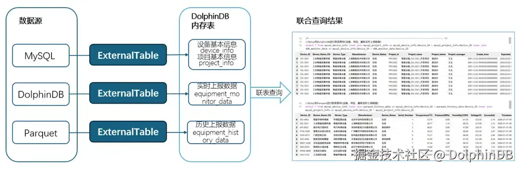 //MySQL和DolphinDB进行联表查询(设备、项目、最新实时采集数据)