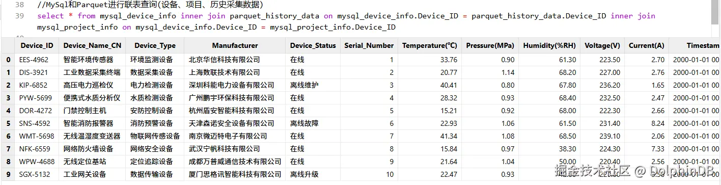 //MySQL和Parquet进行联表查询(设备、项目、历史采集数据)