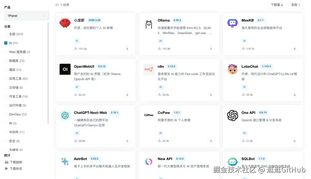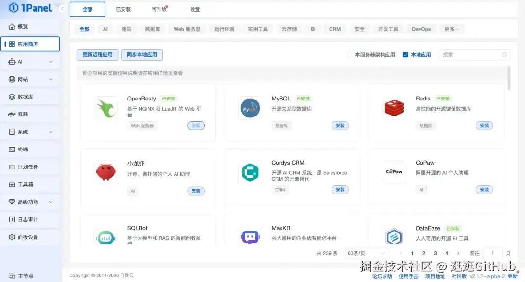 1Panel 正在从一个服务器管理面板,往 AI 智能体分发和管理平台的方向演进。