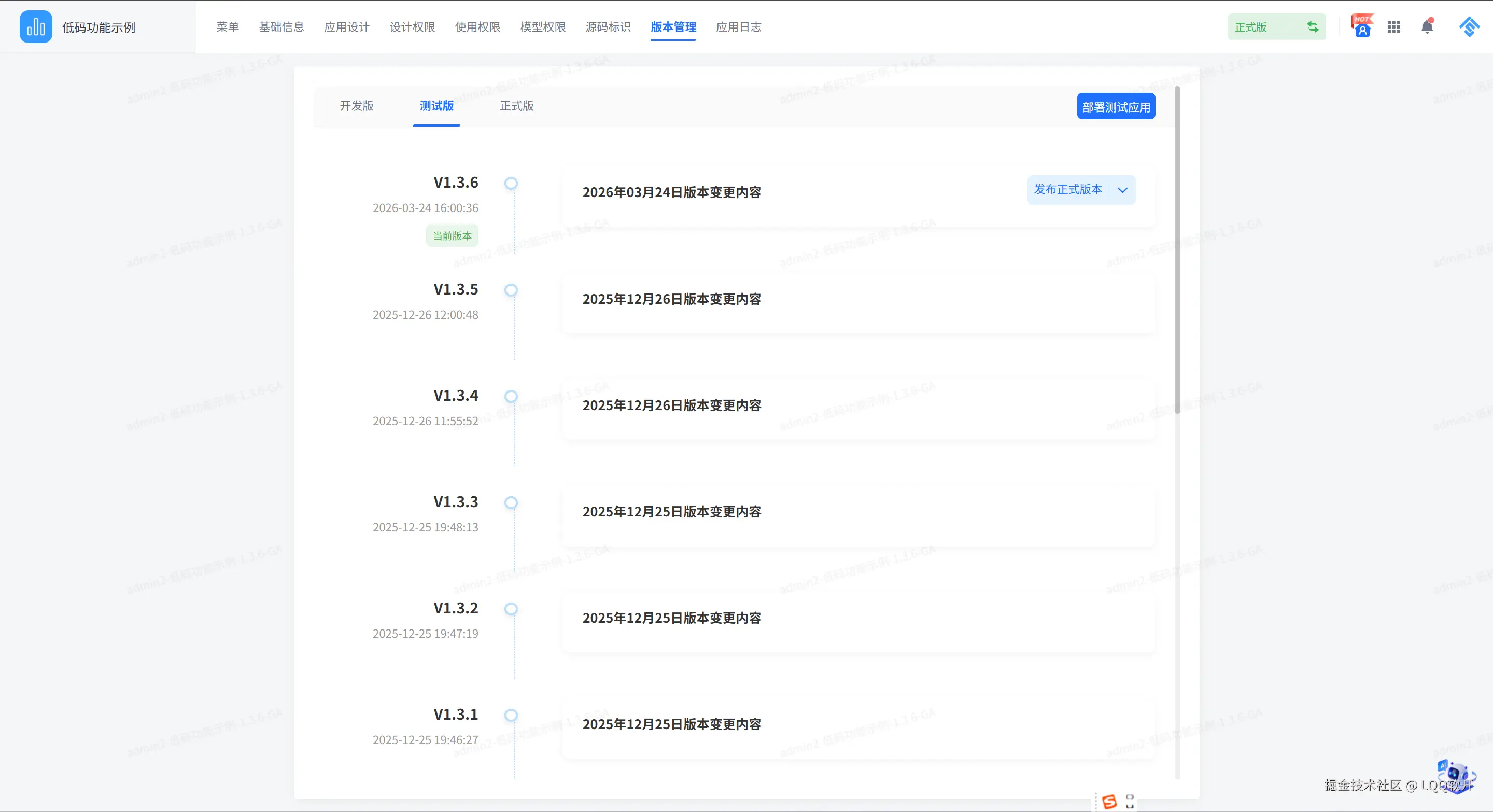 版本管理:每一次应用更新、代码修改,平台都会自动留存版本记录。如果新功能上线后出现问题,可以一键回滚至上一个稳定版本,保障业务连续性。
