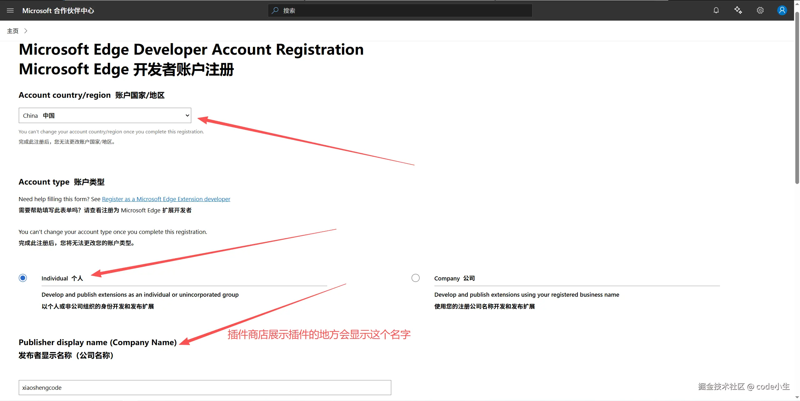 如果你有公司就填公司信息,没有的话选个人,下面这个发布者名称自定义即可,这个会在插件详情页展示出来。