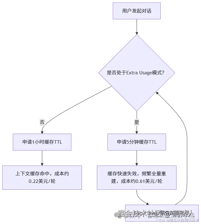 - Extra Usage 模式下,缓存 TTL 从 1 小时降级为 5 分钟