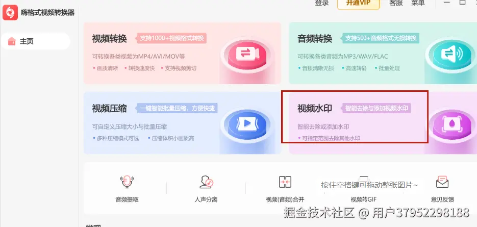 嗨格式视频转换器是一款功能全面的音视频格式处理软件,虽然其主要功能就是帮助用户解决各类音视频文件的转换问题,但是它也具备视频添加/去除水印、视频转gif、音视频压缩等功能,可以满足用户的多种需求。
