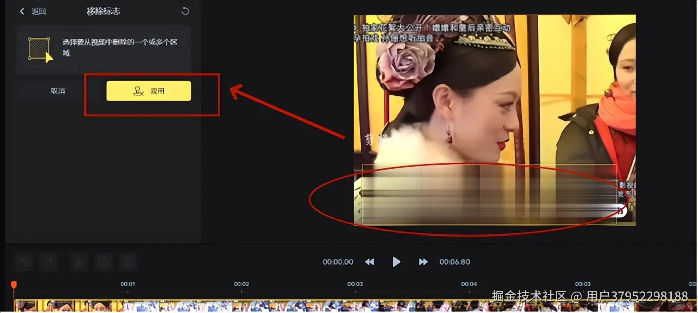 步骤3,框选水印区域,点击“应用”即可去除水印图案。