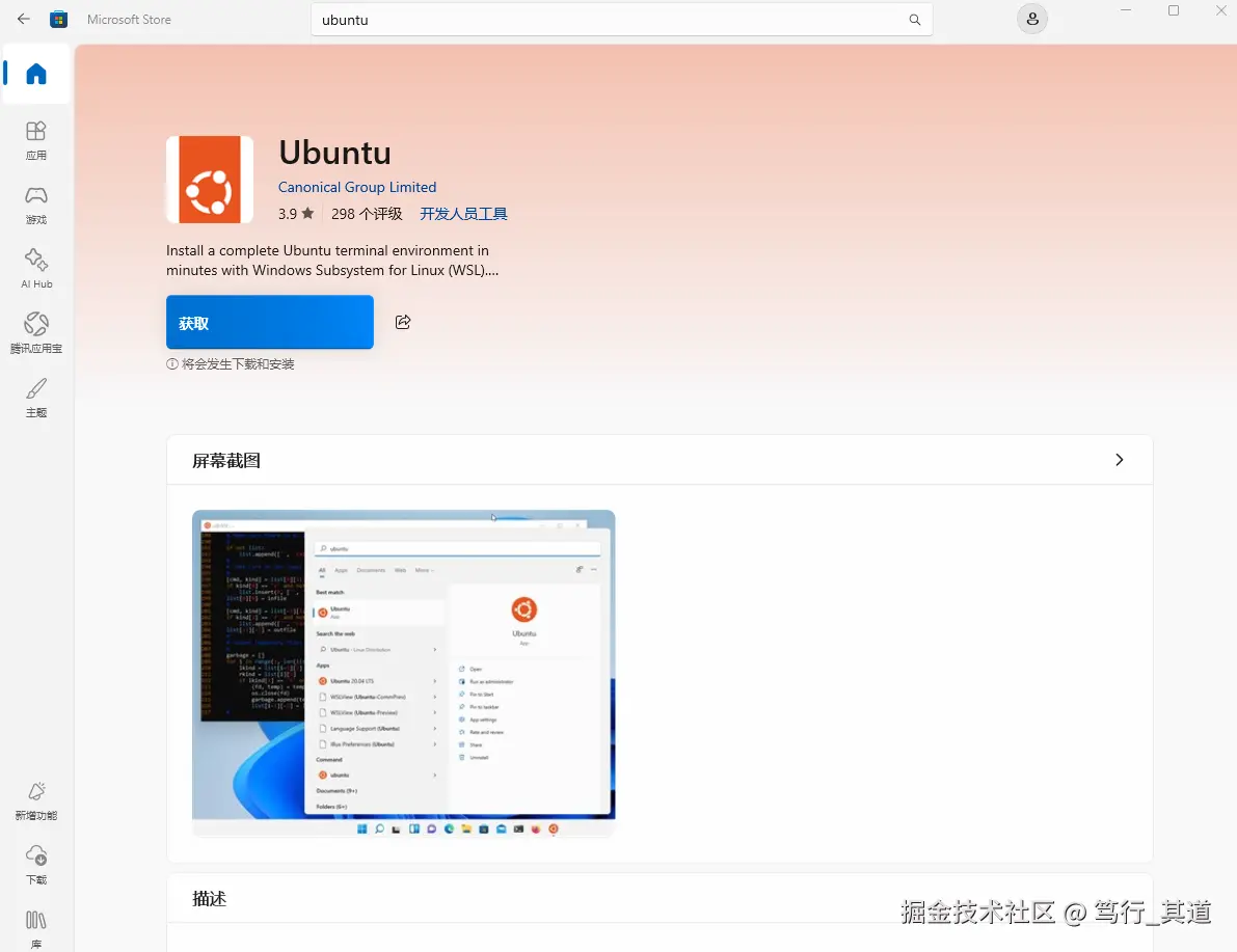 ① 在微软商店安装 Ubuntu,首次进入需设置账号密码。