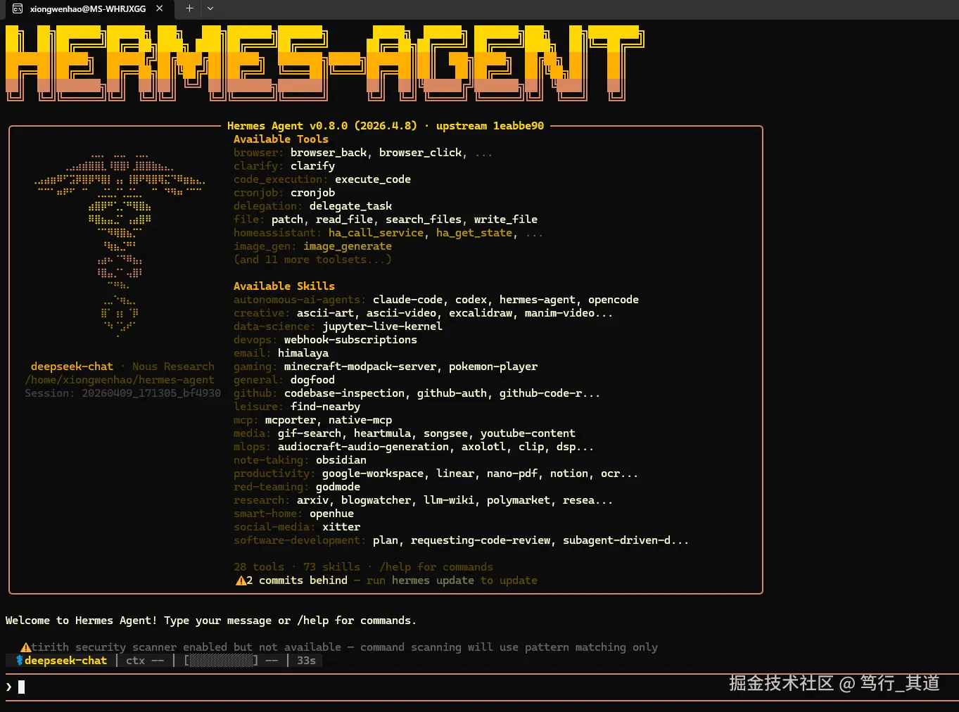 Hermes Agent 是由 Nous Research 开发的自我进化 AI 代理,它是目前唯一内置学习闭环的 agent——能从经验中创造技能(Skills)、在使用过程中自我优化、搜索历史会话,并跨 session 构建对用户的深度理解。