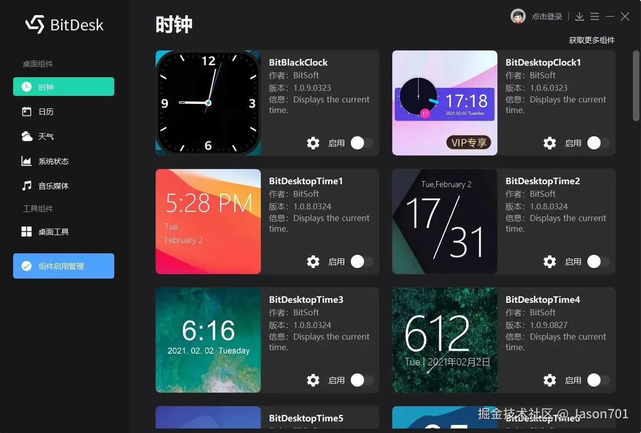 桌面插件是BitDock的亮点之一,包含了许多提升桌面使用效率的组件: