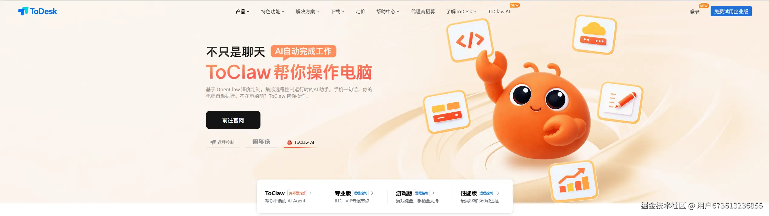 | ToDesk ToClaw | 极低,口语指令即可操作 | 零部署,打开即用 | 近乎零成本 | 高,7天实测零故障 | ✅ |