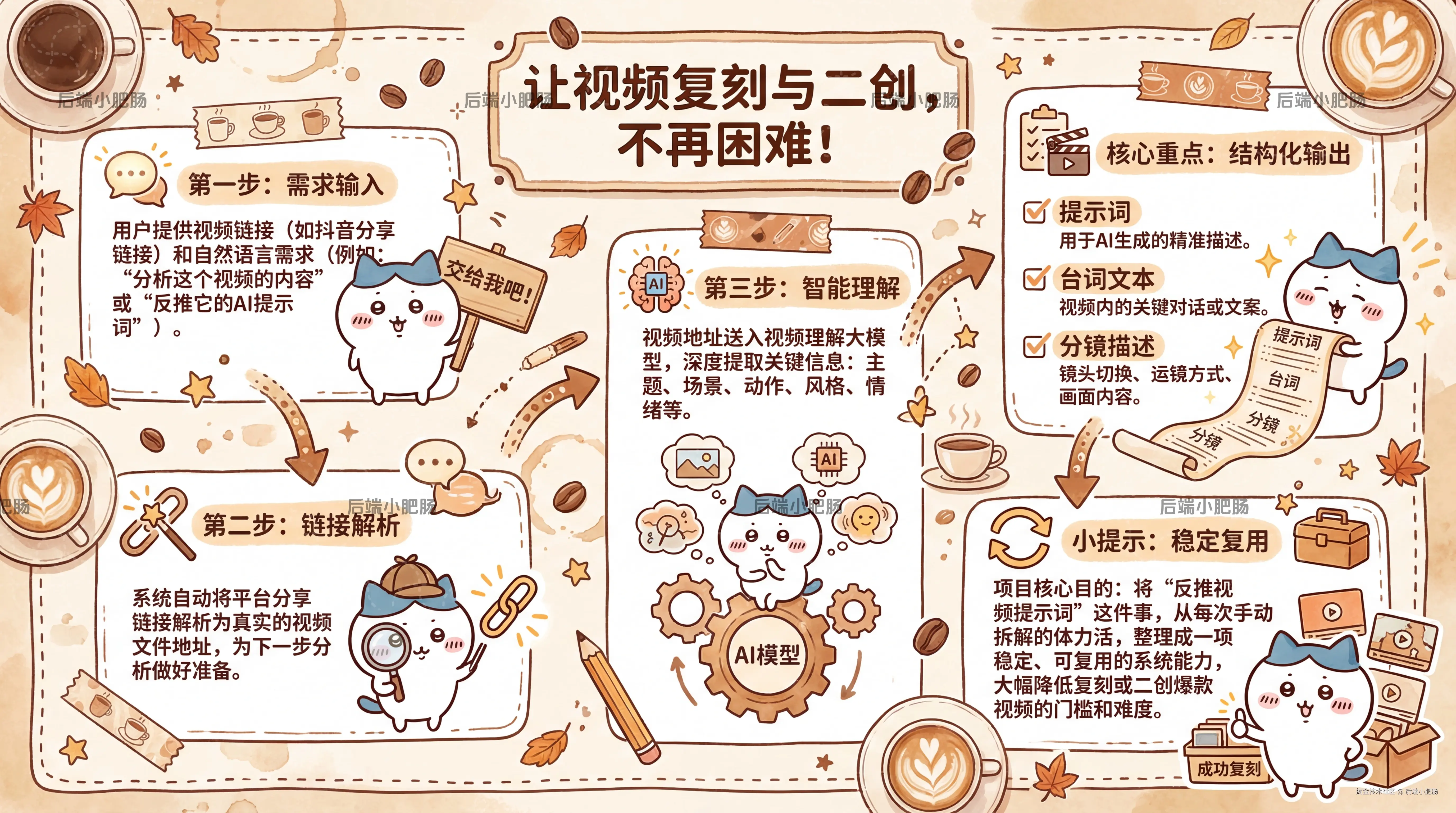 前面先接收用户提供的视频链接和自然语言需求(如用户想要分析视频内容或反推视频提示词);