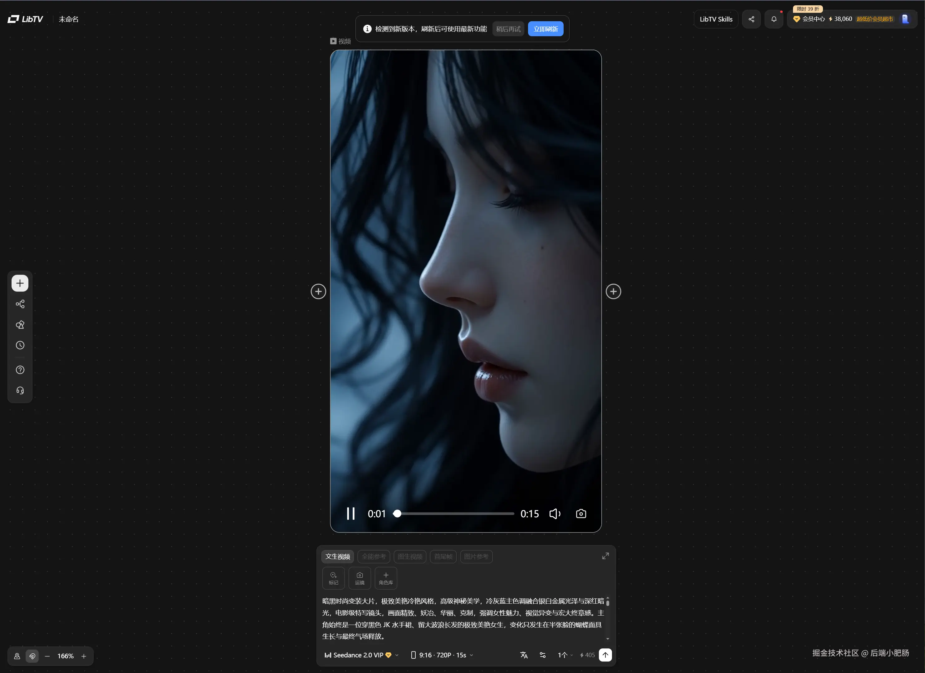 skill会生成文生图视频提示词,我稍微做了二创用libtv+Seedance2.0,用的文生视频模式: