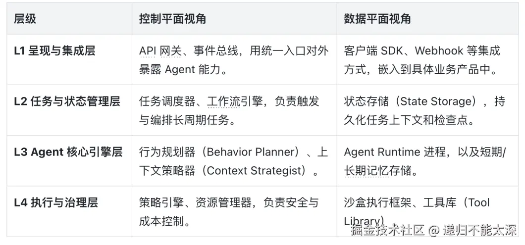 数据平面负责“如何去做”:实际的 Agent 运行实例、状态存储、记忆存储和沙盒执行环境。