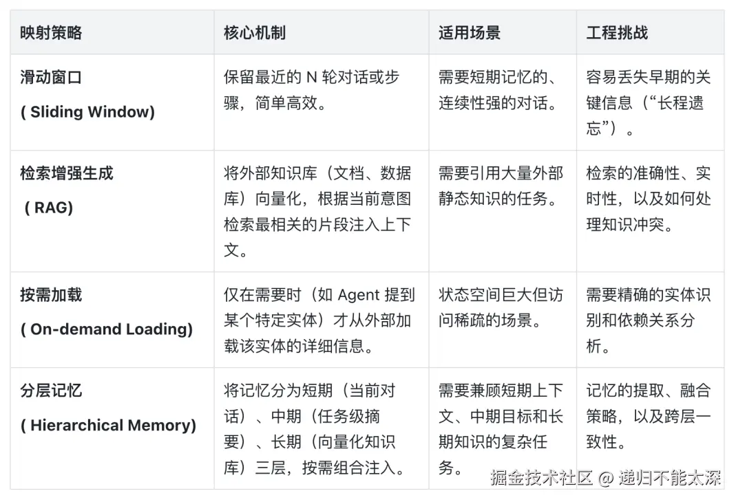 Agent 的上下文(Context)是其感知的全部来源,它包含了任务目标、历史交互、工具定义、当前状态等海量信息。如何将这些信息有效“压缩”到 LLM 的 Token 窗口内,是规划质量的生命线。