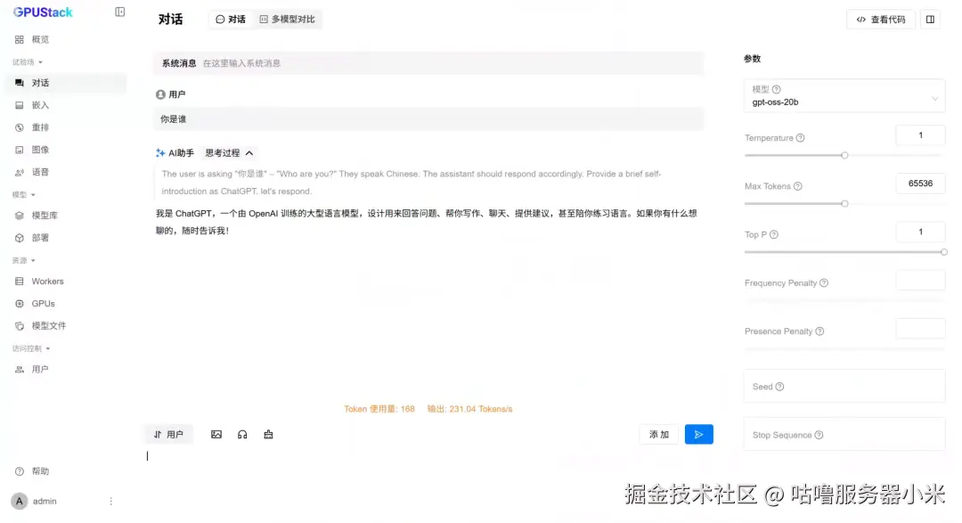 EvalScope 是魔搭社区推出的模型评测与性能基准测试框架,简单易上手,此处使用 EvalScope 来对比 Ollama 和 GPUStack vLLM 后端运行的 GPT OSS 20B 与 GPT OSS 120B 的吞吐性能表现。