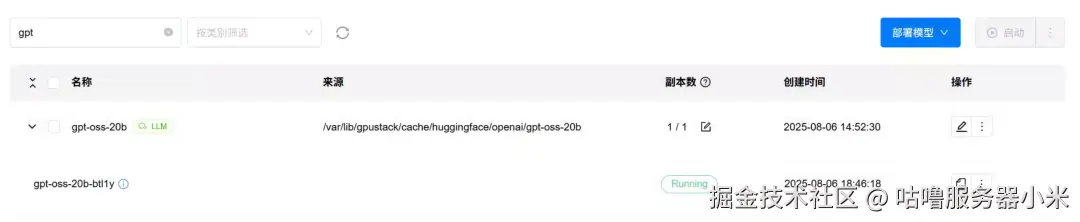 确认模型下载完成后,点击已下载模型右侧的部署按钮,部署模型。