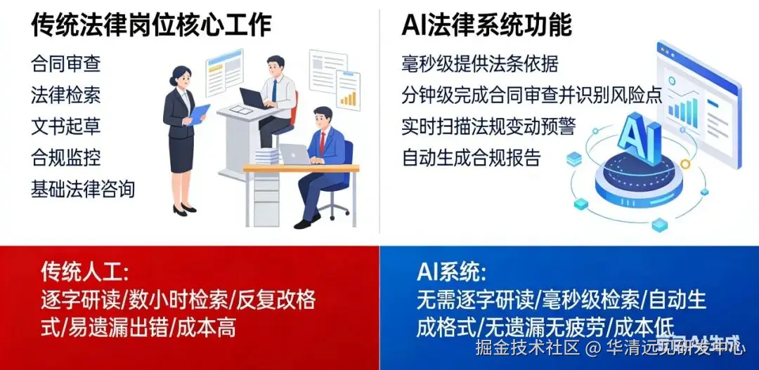 它们不会遗漏法条,不会疲劳出错,成本还远低于人工。那些不需要深度法律推理,只需要机械套用模板、重复检索比对的岗位,正在被 AI 快速替代。