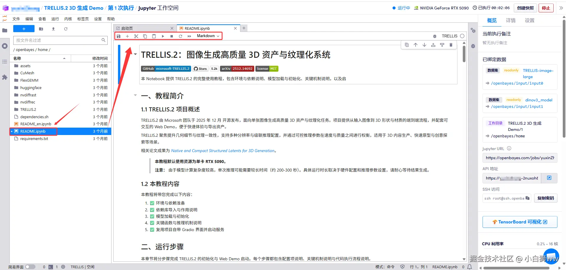 1.页面跳转后,点击左侧 README.ipynb 文件,进入后点击上方「运行」。