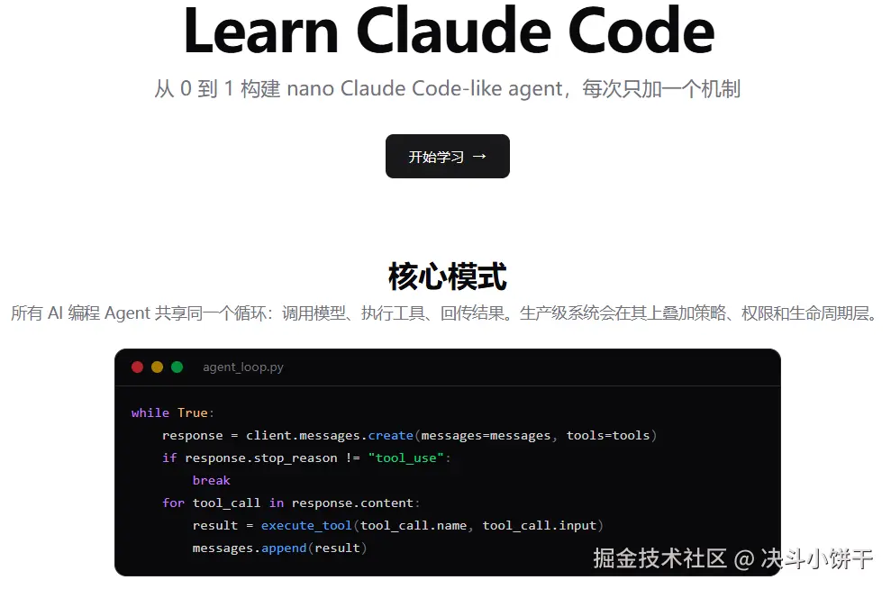 最小可用的 Agent 内核仅仅需要:一个 while 循环 + 一个工具。