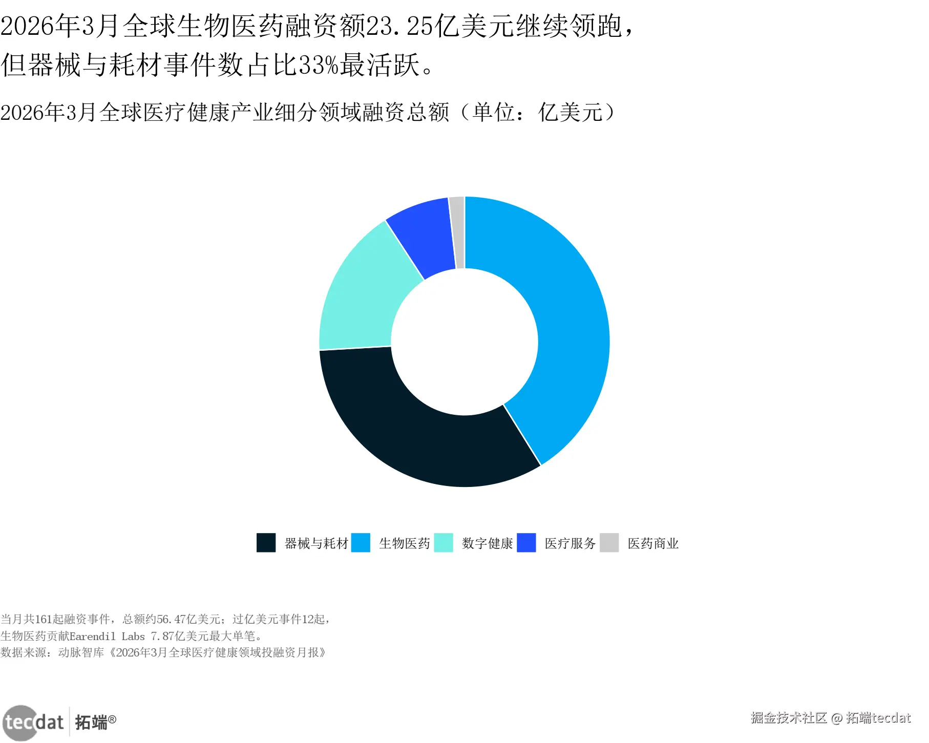 医疗行业全球细分融资半圆环图表5数据EXCEL及PDF模板已分享到会员群