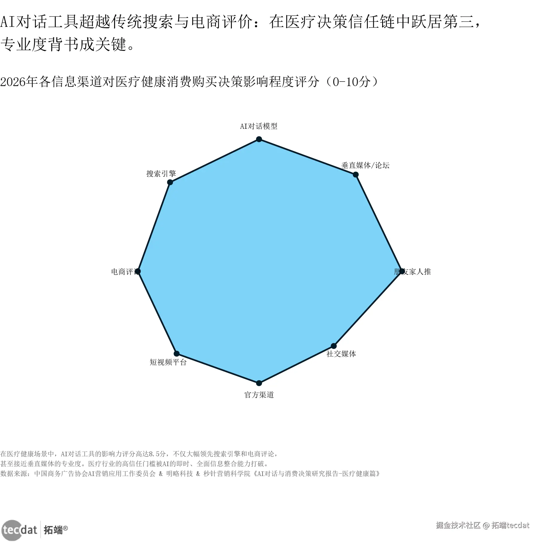 AI对话工具的影响力评分高达8.5分,大幅领先搜索引擎和电商评论。用户极其依赖AI的首轮回答效率。