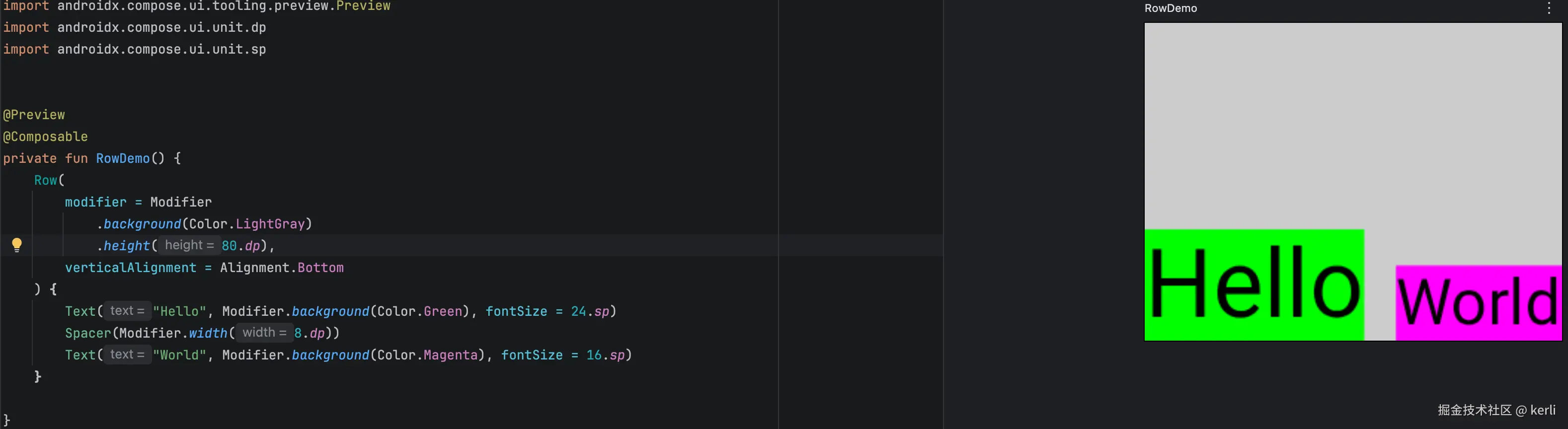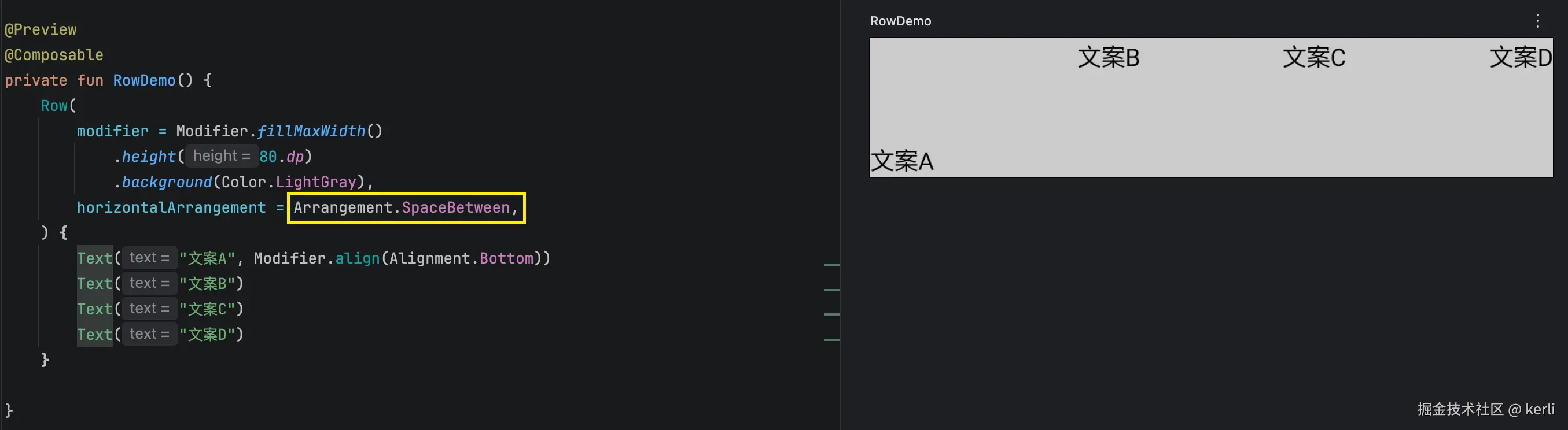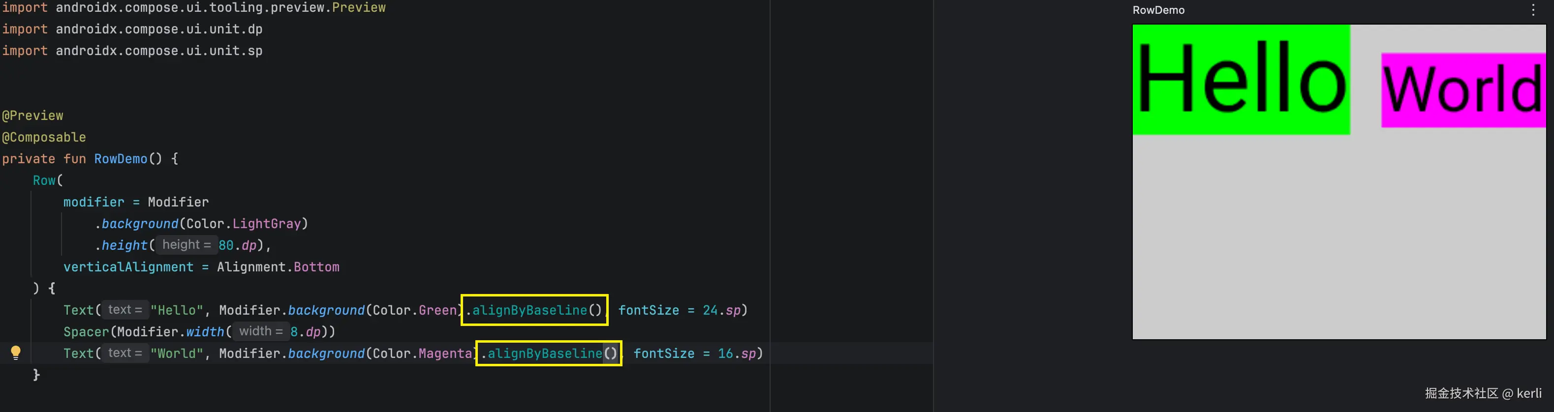 使用 alignByBaseline,让文案基线对齐。但会造成一个问题:文案位置会置顶,尽管集体规则设置了 Bottom,只能通过 padding 调整。