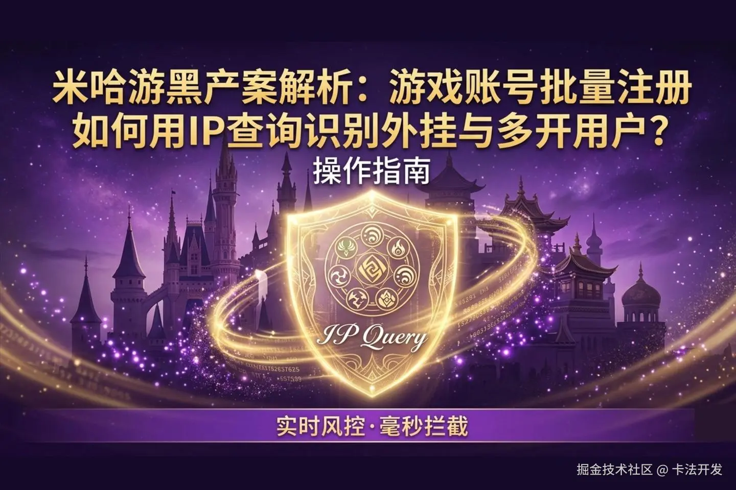 2026年4月9日,上海徐汇警方通报了一起全链条摧毁游戏账号黑灰产团伙的案件:10人落网,涉案超200万元。该团伙利用“全能注册机”配合IP池伪装不同地点,批量注册《原神》等游戏账号,再通过外挂养号高价出售。这引出一个核心问题:游戏运营方如何通过IP查询,在注册环节就识别外挂和多开行为?