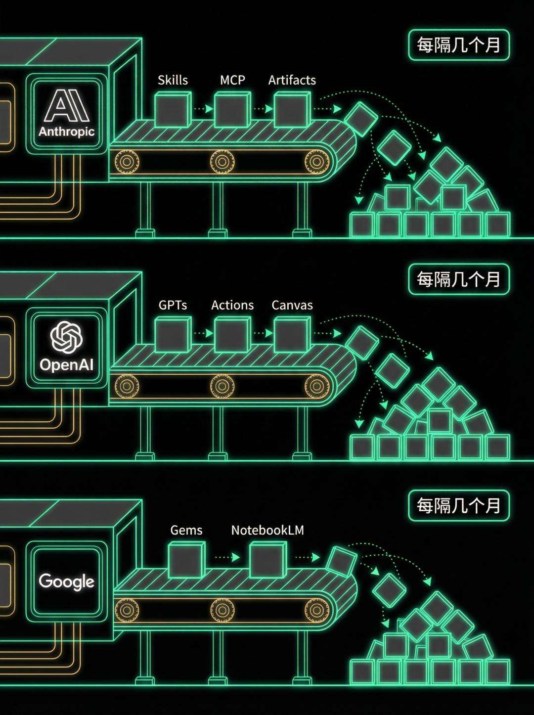 每家公司都想让自己的产品听起来与众不同。微软有Copilot,OpenAI有GPTs,Anthropic有Claude Code,Google有Gemini Extensions。功能其实差不多——让AI调用外部工具完成任务——但每家都要起个新名字,仿佛这是自己的独家发明。