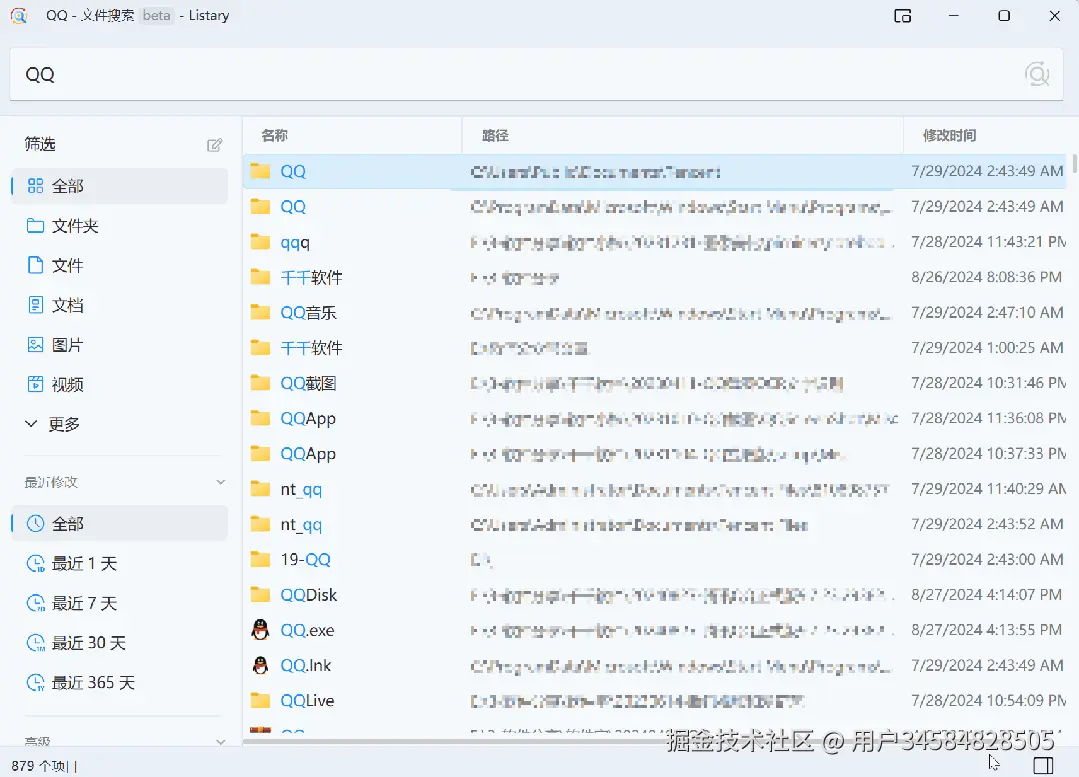 有不少人反馈,Listary 的搜索结果看着很少,其实只是软件面板默认展示有限而已!只需点击右上角的「展示更多文件搜索结果」,就能显示全部搜索内容;展开后还能按文件夹、文件、文档、图片、视频等分类筛选结果。