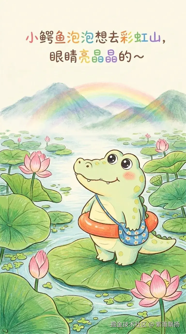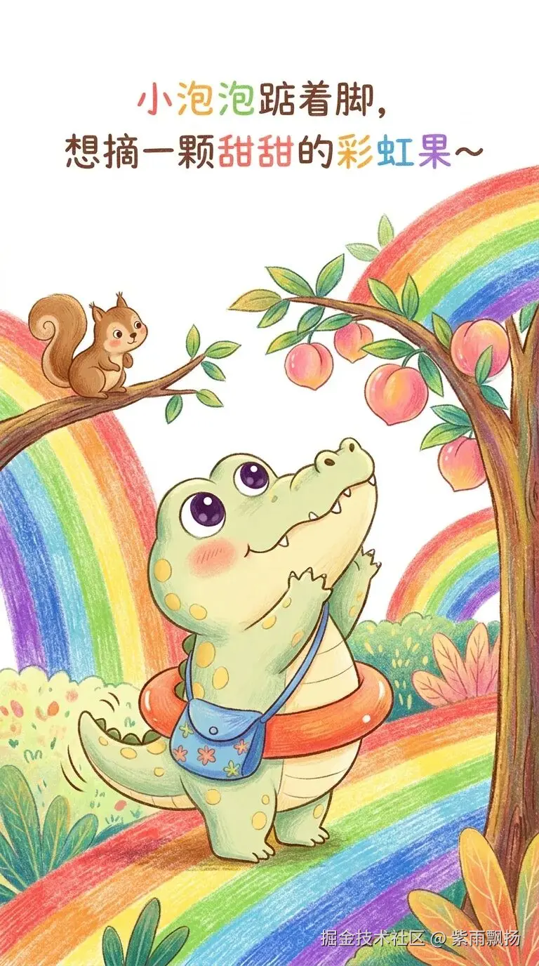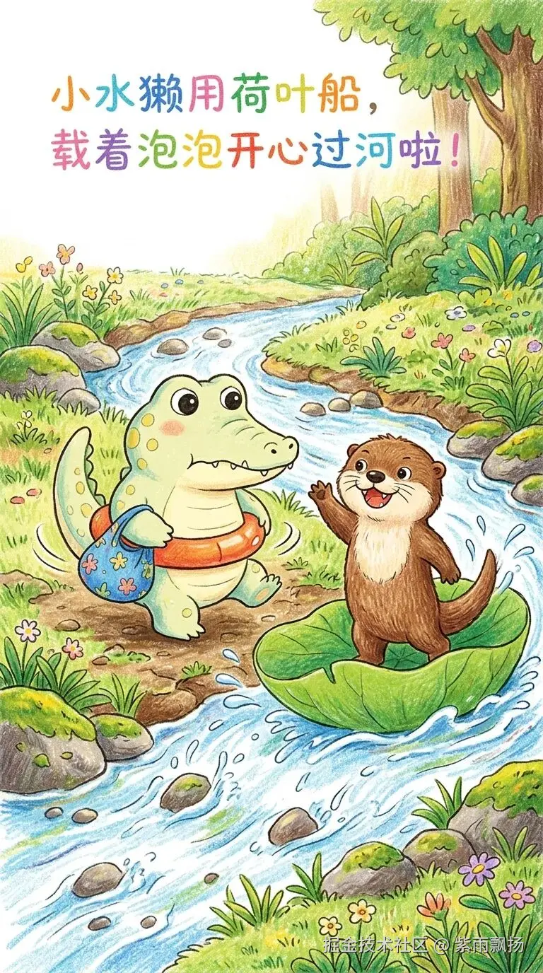 输入:小鳄鱼冒险记,就自动生成5张完整的儿童绘本