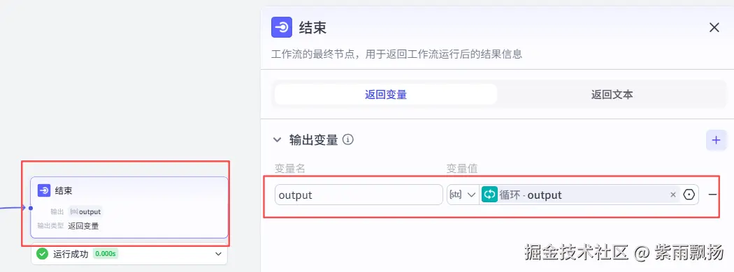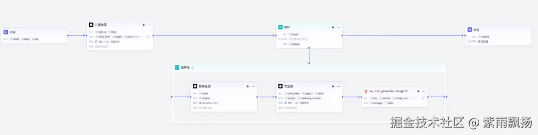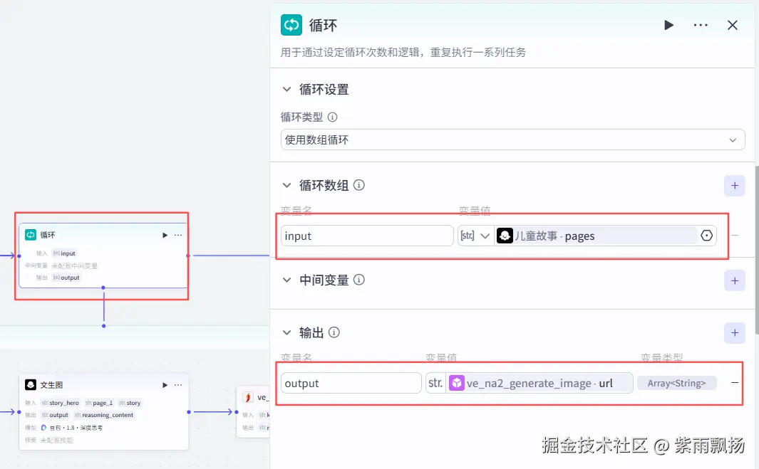 结束节点参数为output,对接到循环节点输出的卡通绘本图片列表。