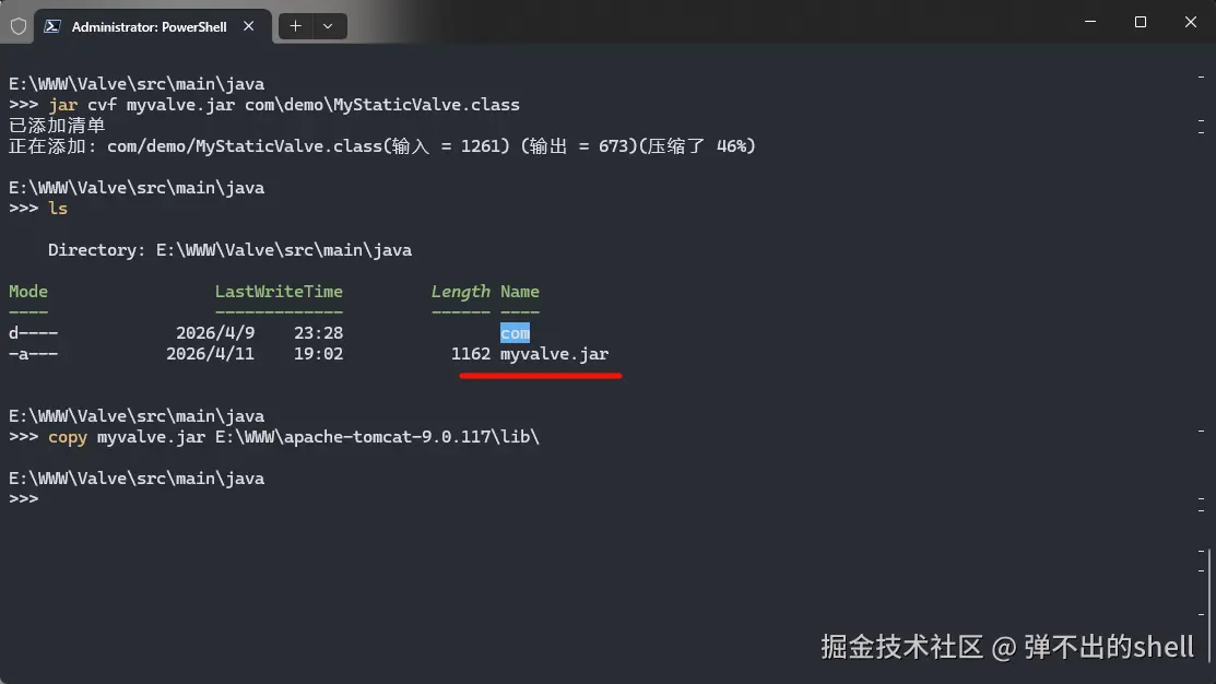 copy myvalve.jar E:\WWW\apache-tomcat-9.0.117\lib\