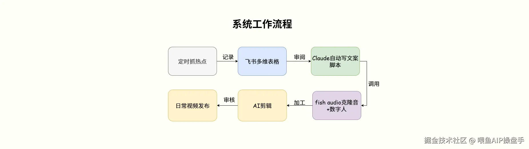 这套系统不是什么高深的技术。它就是几个API的串联——语音识别用阿里云、文案生成用Claude、数据管理用飞书、定时触发用OpenClaw的心跳任务。