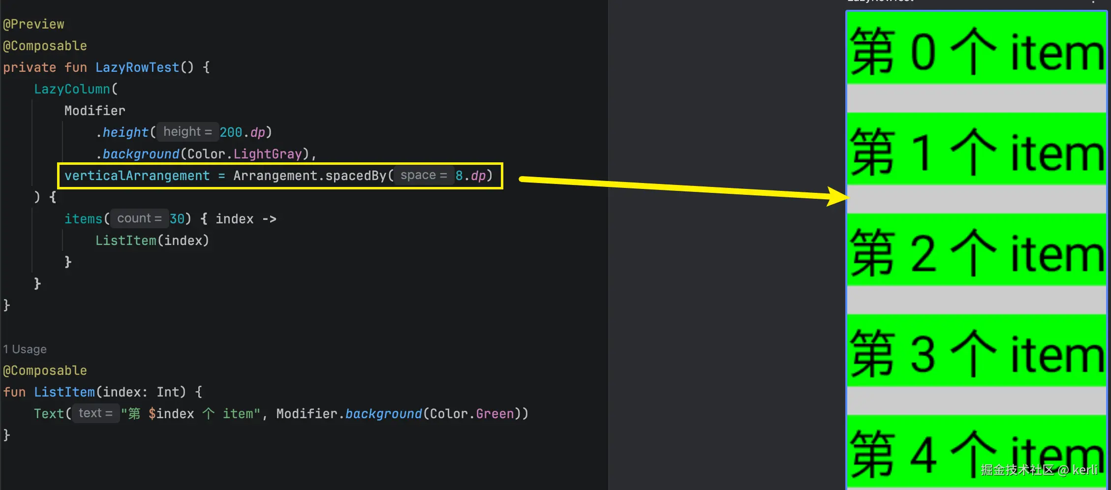 - verticalArrangement:通常用 spacedBy,设置子项间间距